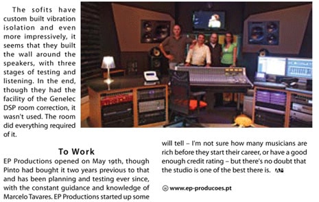 Reportagem da revista Produção Áudio Espanhola sobre os Estúdios EP Produções